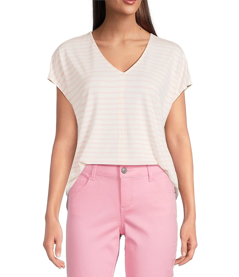 Gibson & Latimer Stripe Print Short Sleeve V-Neck Knit Shirt