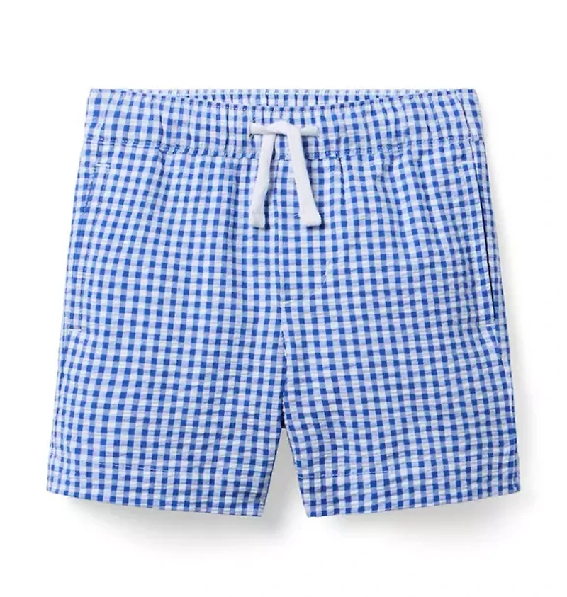 Sunny days are squared away in our breezy seersucker short. Designed in allover gingham with an effortless elasticized waist and pockets for the little things. 100% Cotton Seersucker Elasticized Waist Functional Drawstring Front And Back Pockets Matching Family Styles Available Online Exclusive Machine Washable; Imported
