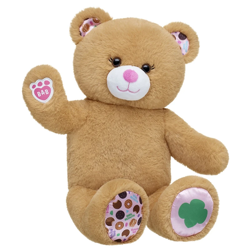 Girl Scout Cookie™ Bear makes the sweetest friend! With soft brown fur and a colorful cookie print on the ears and paw pads, this Girl Scout teddy bear is the perfect companion for learning and growing as a Girl Scout. Give this Girl Scout Build-A-Bear as the perfect gift for any Girl Scout in your life! Girl Scouting builds girls of courage, confidence, and character, who make the world a better place.