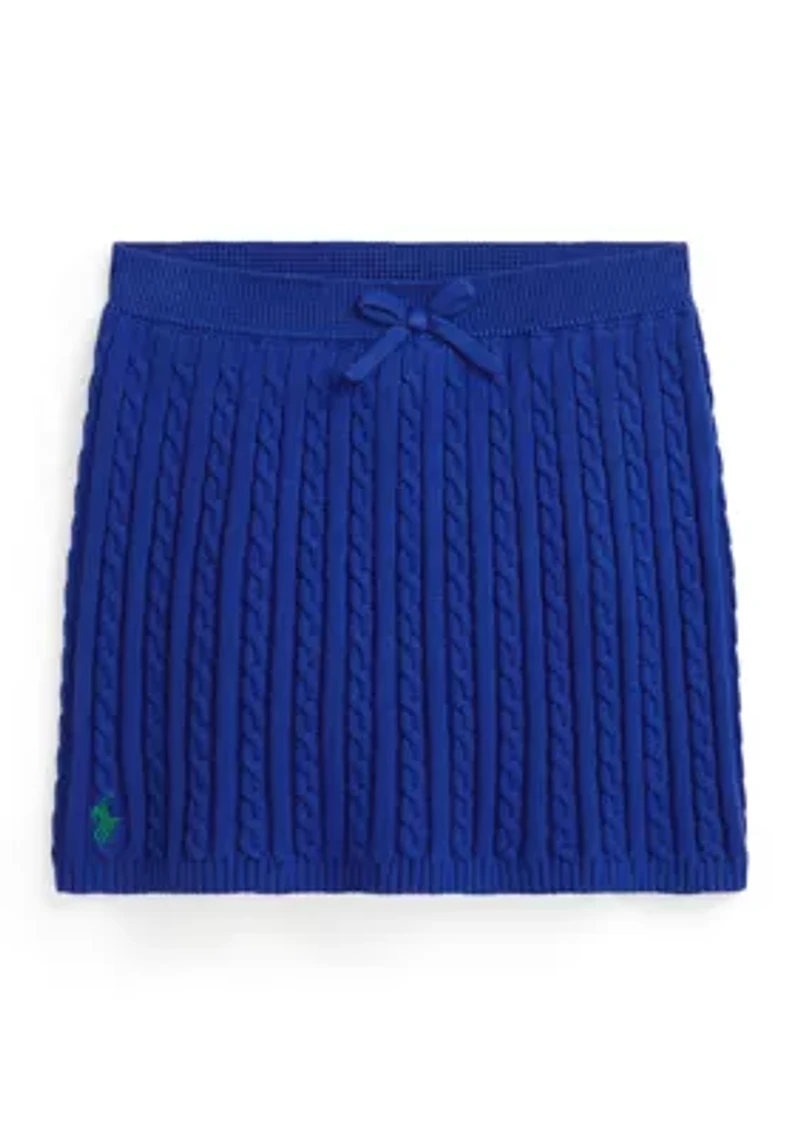 This Ralph Lauren Childrenswear skirt is made with medium-weight combed cotton that’s knit in a cute mini-cable pattern. Signature embroidered Pony at the right hem Elasticized waistband with a pre-tied bow Rib-knit hem Imported Product Specifications Size 4 has a 9" length Material & Care 100% cotton Machine washable