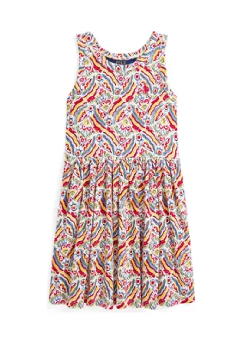A cute pick for the warmer months, this cotton dress is washed for added softness and printed with a vibrant motif inspired by the Italian Riviera. By choosing cotton products, you’re supporting investment in the Better Cotton™ mission to help cotton communities survive and thrive, while protecting and restoring the environment. This product is sourced via a system of mass balance and therefore may not contain Better Cotton™. Visit bettercotton.org/mass balance for more information about mass balance. Sleeveless fit-and-flare silhouette. Size 4 has a 22" body length (front and back). Signature embroidered Pony at the left chest. Crew neck. Shirred waist. Imported Material & Care 100% Cotton Machine washable