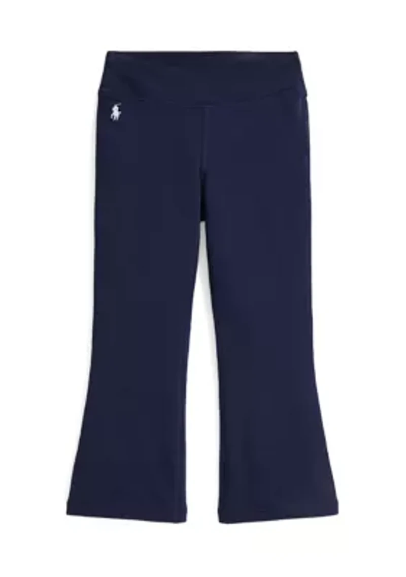 These Ralph Lauren Childrenswear pants unite comfortable stretch-cotton jersey and a modern flared silhouette. Ralph Lauren's embroidered Pony adds a signature finish. 93% cotton, 7% elastane. Machine washable. Flared silhouette. Size 4 has a 6" rise, a 15.5" inseam and a 6" leg opening. Signature embroidered Pony at the right hip. Elastic waistband. Imported.