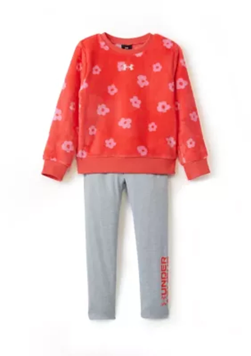 Your little girl is sure to love this two-piece set from Under Armour®. Crafted from a soft cotton blend, this sherpa set with stretch is great for a day of play. Featuring flowery detailing, your little one will feel both active and adorable. 2-piece set Elastic waistband, pullover Imported Material & Care Cotton, polyester Machine washable