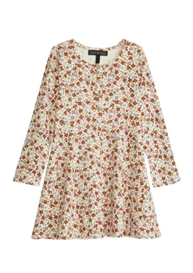 Girls 4-6X Long Sleeve Corduroy Printed Dress