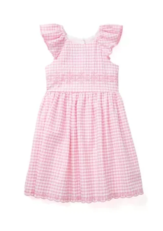 Girls 4-6x Pink Check Embroidered Bodice Dress