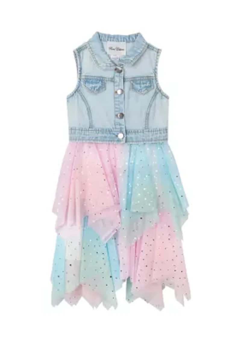 Girls 4-6x Sleeveless Denim Vest with Rainbow Dress