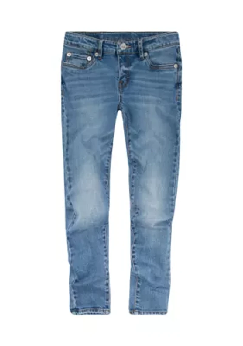 Designed with a skinny leg silhouette, these girls' jeans by Levi's® provide a versatile addition to her denim collection. Button closure Zip closure Belt loops Classic 5-pocket styling Skinny fit Skinny leg Imported Material & Care Denim Cotton, polyester Machine washable