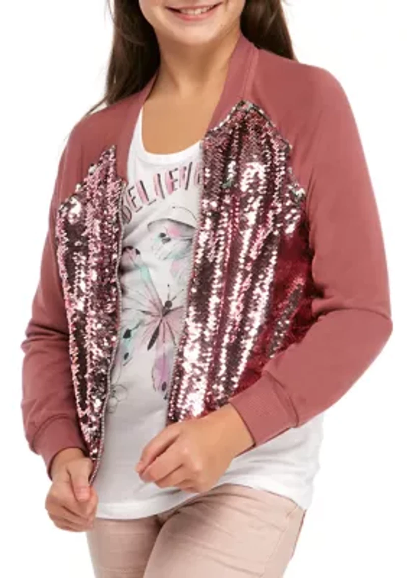 Girls 7-16 2 Piece Sequin Bomber Jacket with Tank