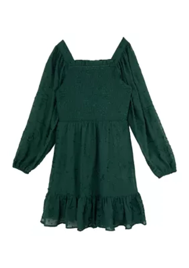 Girls 7-16 Smocked Bodice Textured Dress