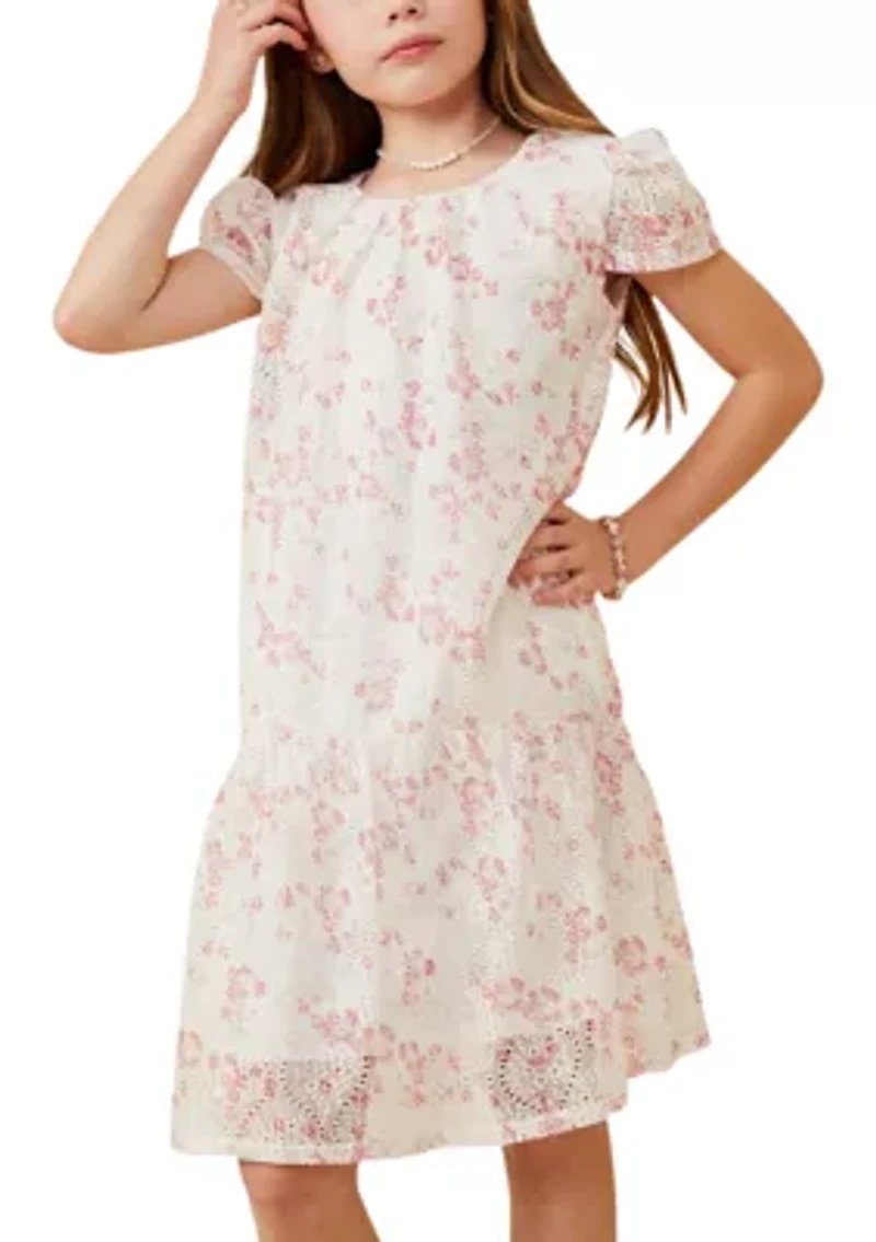 Girls 7-16 Floral Eyelet Lace Tiered Dress