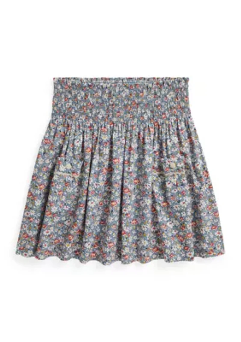 Girls 7-16 Floral Smocked Cotton Poplin Skirt