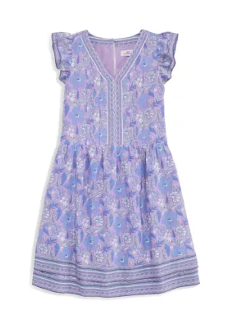 This charming dress from Vineyard Vines is perfect for your little girl's special occasions. Crafted from a soft, breathable cotton blend, it ensures all-day comfort. The pullover design makes dressing a breeze, while the flutter sleeves and pintuck detailing add a touch of elegance. The V-neckline adds a delicate touch, making this dress perfect for any event. Pullover V-neck Short flutter sleeves Imported Material & Care Cotton, modal Machine washable
