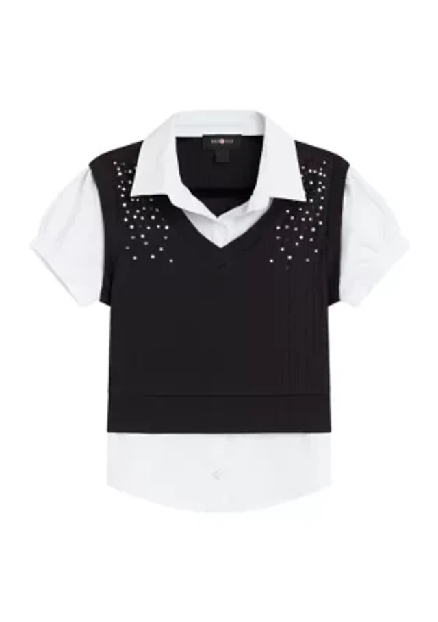 Girls 7-16 Pearl Trim 2Fer Vest