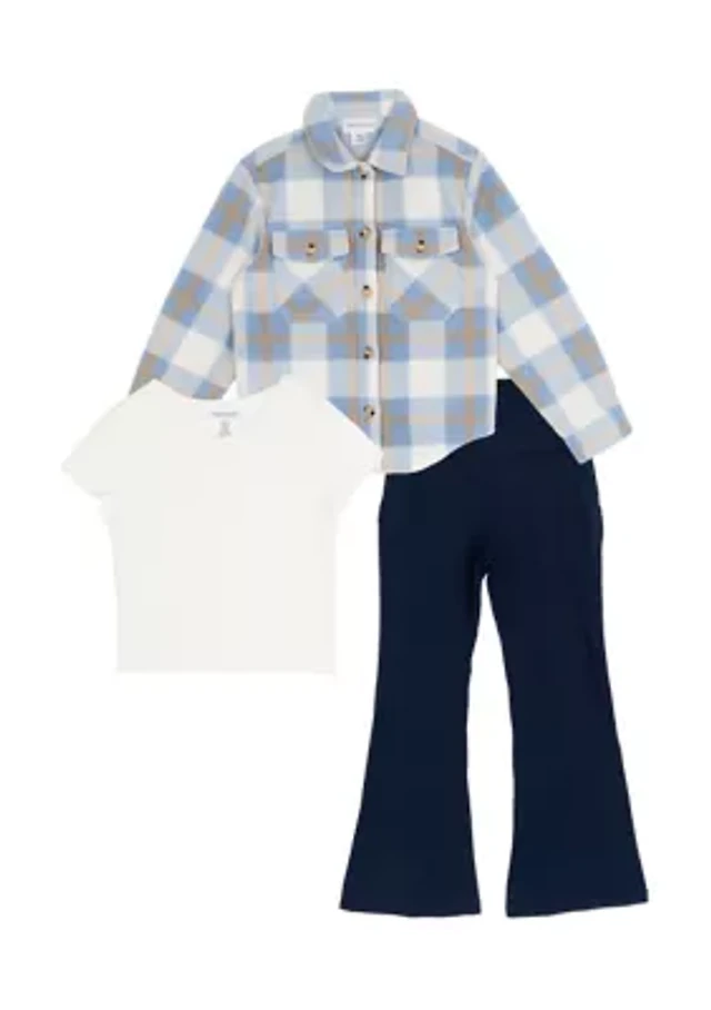 Girls 7-16 Plaid Shacket and Flare Legging Set