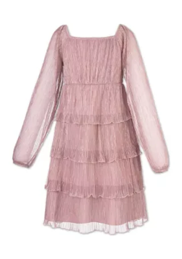 Girls 7-16 Plisse Ruffle 3 Tier Dress