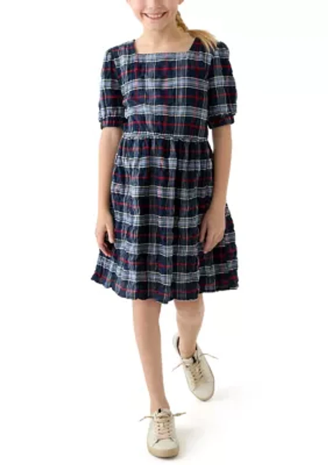 Girls 7-16 Printed Seersucker Puff Sleeve Dress