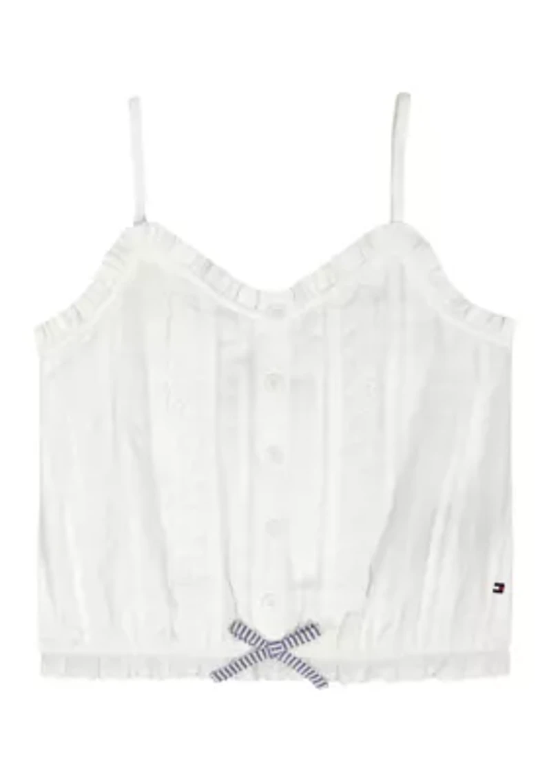Made with lightweight cotton dobby, this cami from Tommy Hilfiger features ruffle trim at the neckline and lace trim at the placket and hem for chic warm-weather style. Pullover Square neck Sleeveless Imported Material & Care Cotton, polyester Machine washable