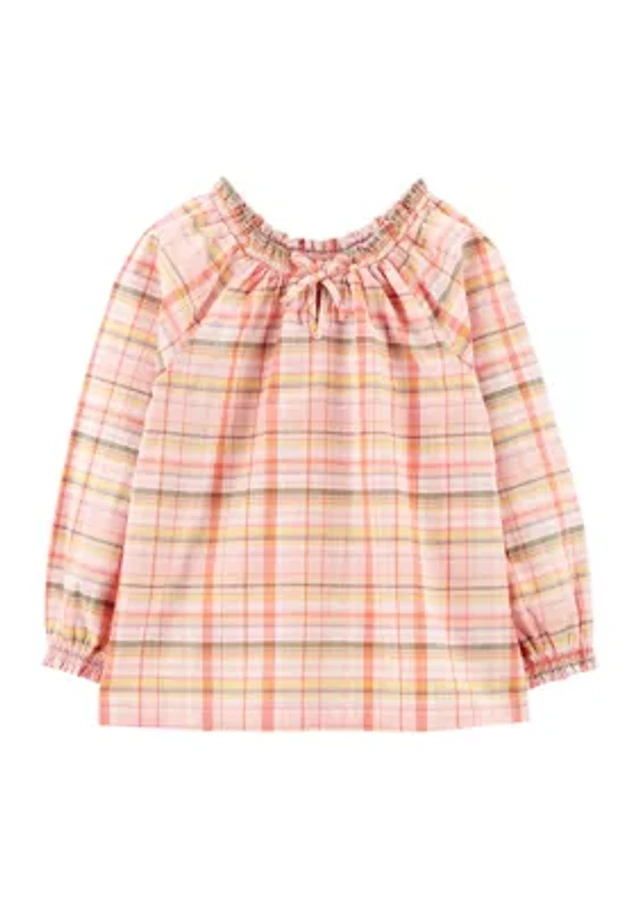 Girls 7-16 Ruffle Plaid Top
