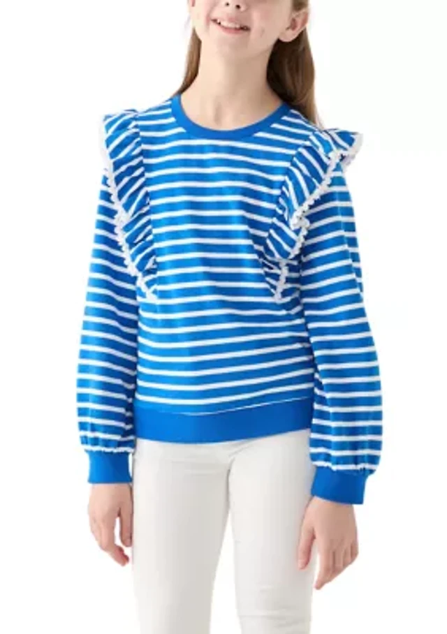 Girls 7-16 Ruffle Shoulder Stripe Maxi Dress