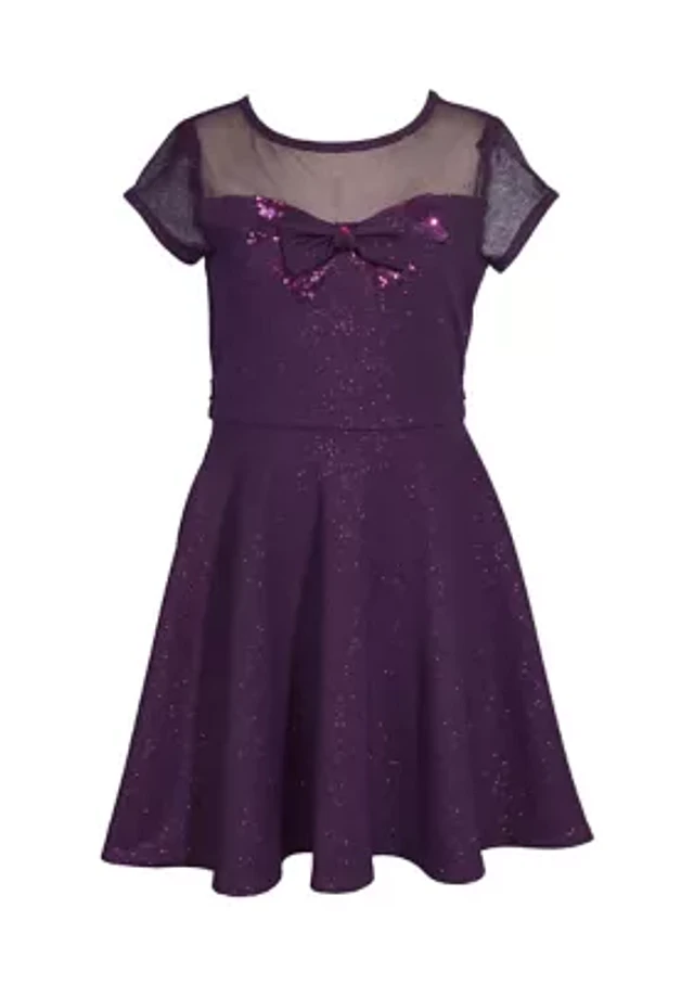 Girls 7-16 Short Sleeve Sparkle Bow Skater Dress