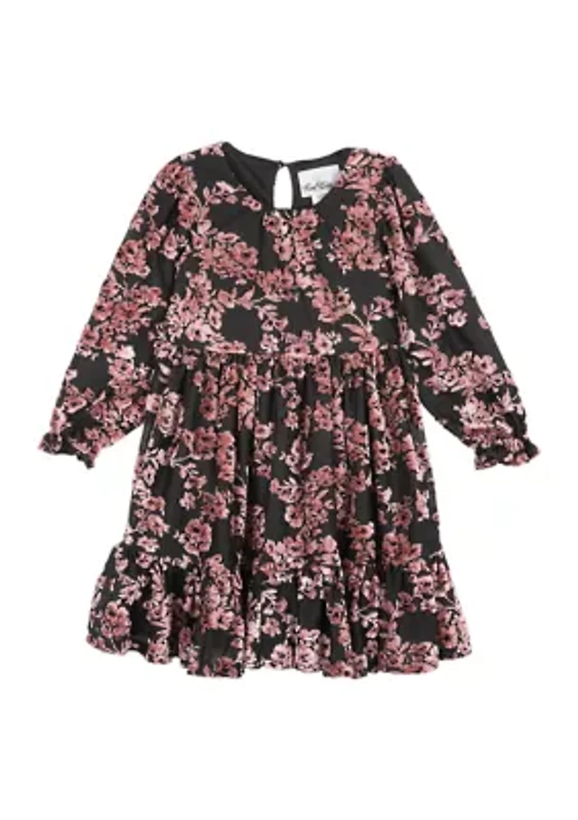 Girls 7-16 Antique Floral Print Tiered Dress
