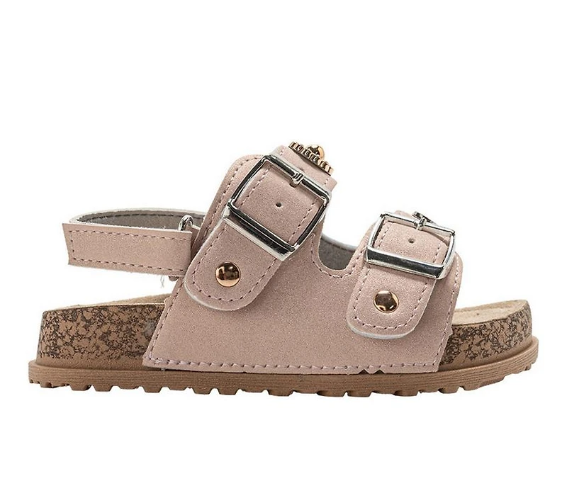 Girls' Bebe Toddler Poppy Footbed Sandals Designed for everyday comfort and playful style, these footbed sandals are perfect for active little days. The synthetic upper features multiple charm accents that add a fun, decorative touch. Adjustable buckle straps help provide a secure, customized fit, while the contoured footbed supports every step. The open design keeps things breathable for warm-weather adventures.