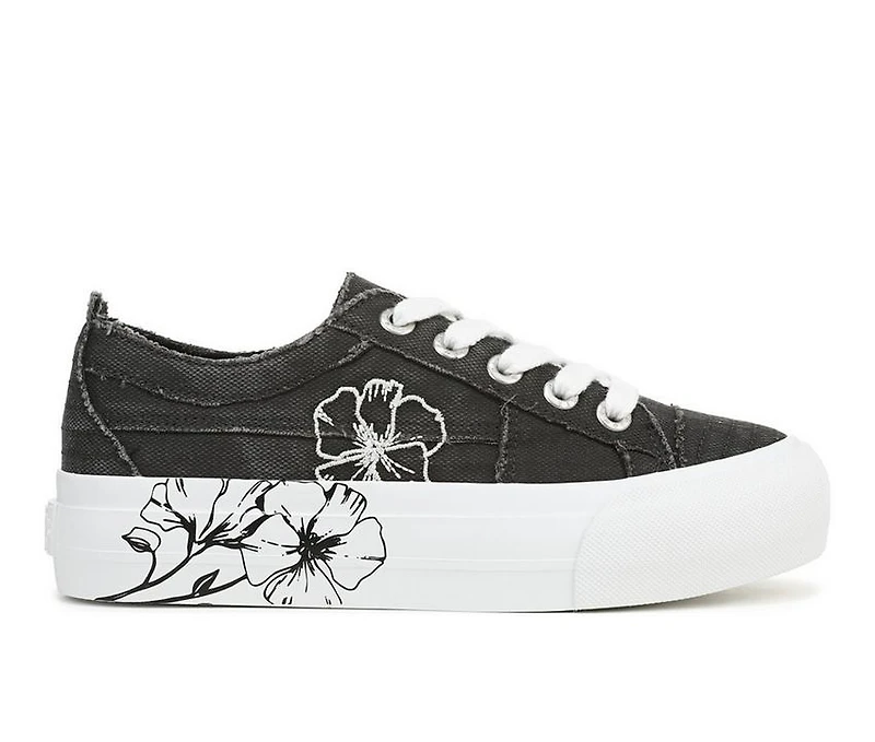 Girls' Blowfish Malibu Toddler & Little Kid Sadie-Sun 10 Sneakers This platform sneaker adds playful detail to a bold everyday silhouette. A canvas upper features decorative floral embellishments that extend onto the outsole. Lace-up styling with metallic eyelets provides a secure fit. The round toe includes a textured cap for durability. Finished with a platform sole for standout height.