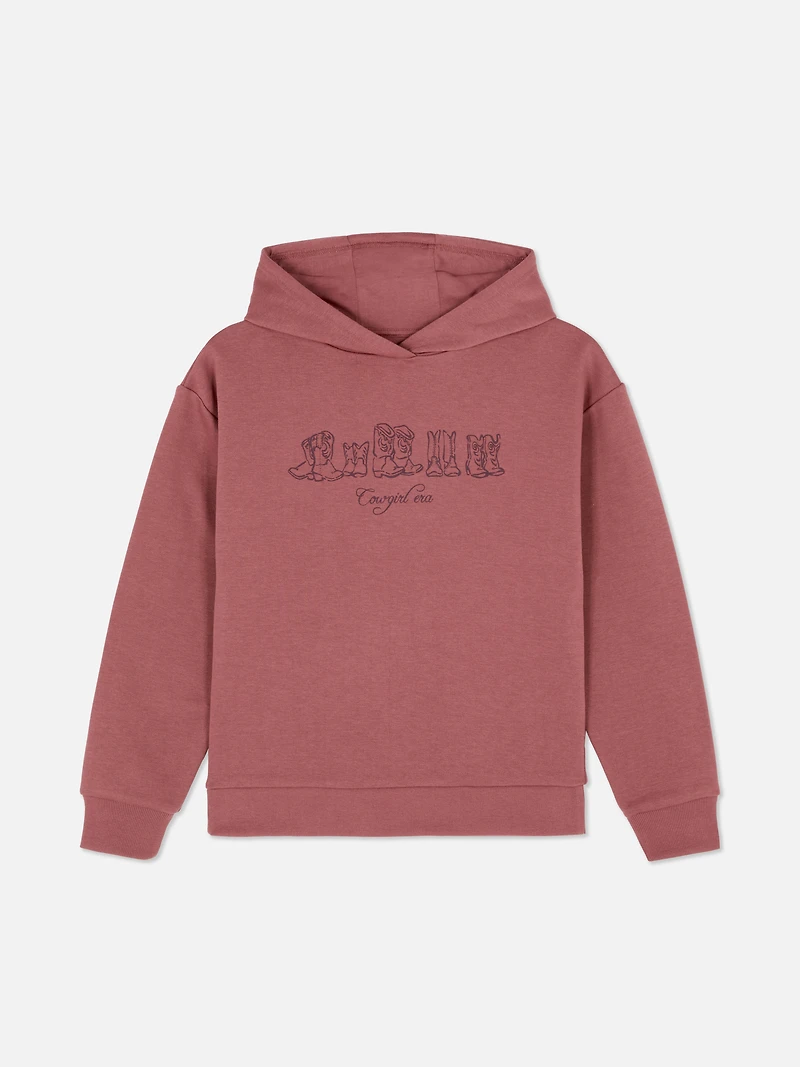 Girls Dark Pink 7-14yrs | Printed Pullover Hoodie