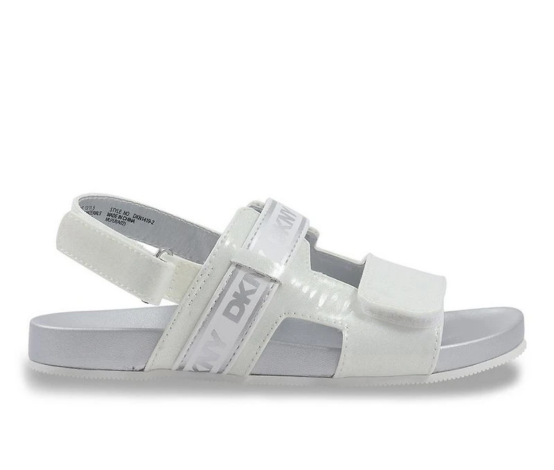 Girls' DKNY Little Kid & Big Kid Tamara Dasha Sandals This sporty-meets-stylish sandal is built for active days with a cool, logo-driven design. Featuring wide straps with DKNY-branded webbing and glossy overlays, it delivers secure comfort and bold flair. The adjustable hook-and-loop closure makes getting ready a breeze, while the contoured footbed and open design keep things breezy and comfortable. It's the ultimate blend of fashion and function for on-the-go fun.