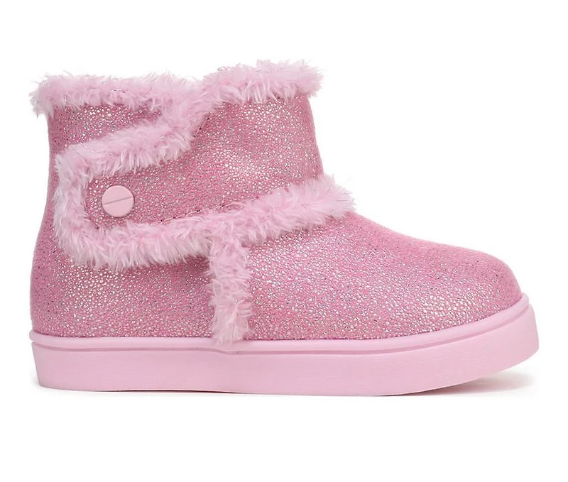 Girls' Dr. Scholls Toddler Madison Play Chillin Winter Boots Cute and cozy, these sparkly toddler boots keep little feet warm while adding fun style. With a glitter or shimmer upper and faux fur trim, they’re designed to stand out. The adjustable hook-and-loop closure ensures an easy fit, while the cushioned insole keeps steps comfortable. A flexible outsole with grooves makes them perfect for everyday adventures.