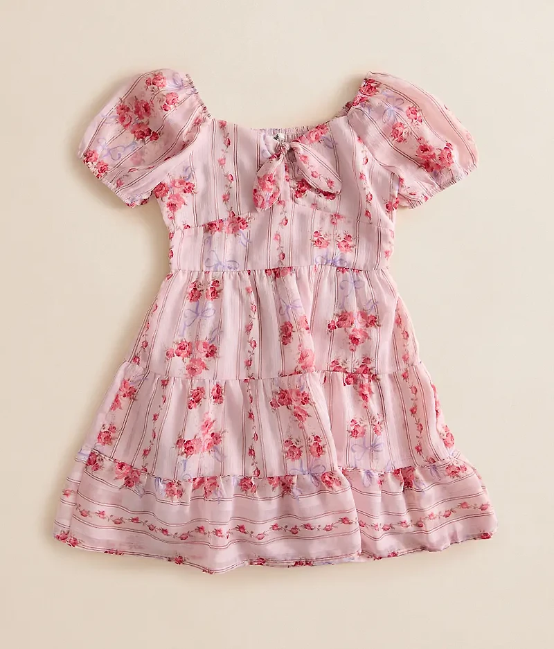 Girls - Floral & Bow Striped Dress