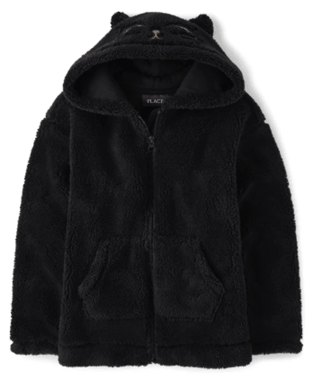 Girls Mommy And Me Cat Sherpa Zip-Up Hoodie