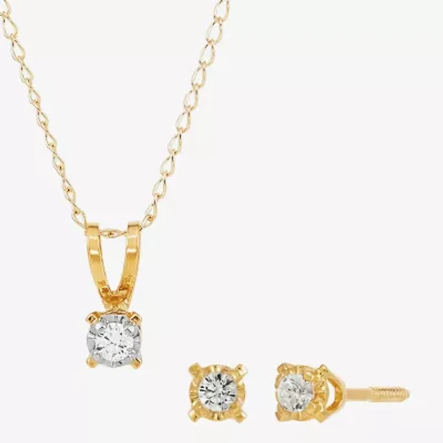 Girls Natural White Diamond 14K Gold Round 2-pc. Jewelry Set