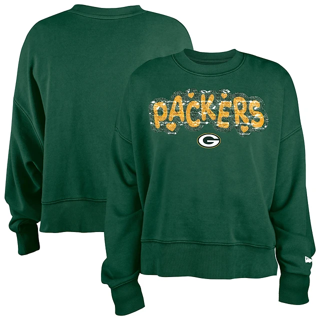 Girl's New Era Green Green Bay Packers Flip Sequin Sweatshirt