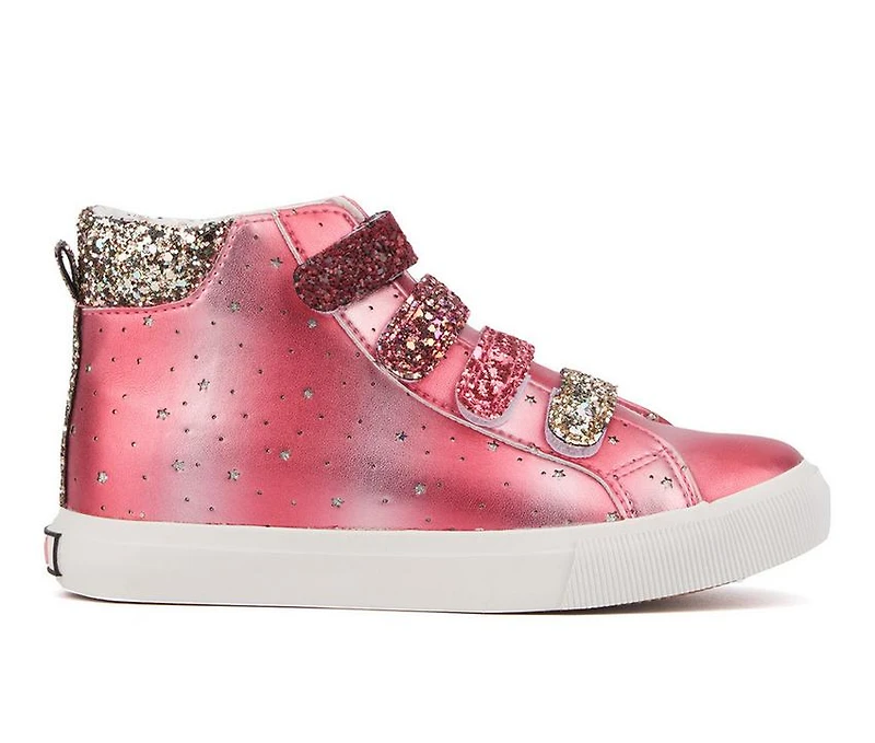 Girls' Olivia Miller Girl Little & Big Kid Rain Bow Sneakers Let your little girl shine with our Rain Bow Sneakers! These adorable shoes feature a shimmering metallic finish and playful imprinted star details. With easy Velcro straps that are covered in glitter, they ensure a secure fit and hassle-free wear. The cushioned insole provides all-day comfort, making them perfect for active little ones. Ideal for playdates, outings and everyday adventures!