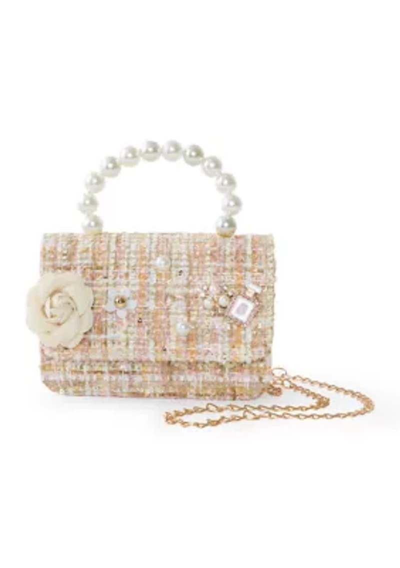 Girls Pink Tweed Purse with Pearl HandleGirls Pink Tweed Purse with Pearl HandleGirls Pink Tweed Purse with Pearl HandleGirls Pink Tweed Purse with Pearl Handle