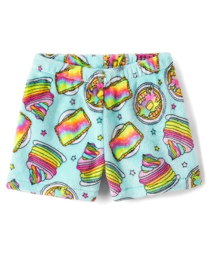 Girls Rainbow Breakfast Pajama Shorts - Cozy Fleece