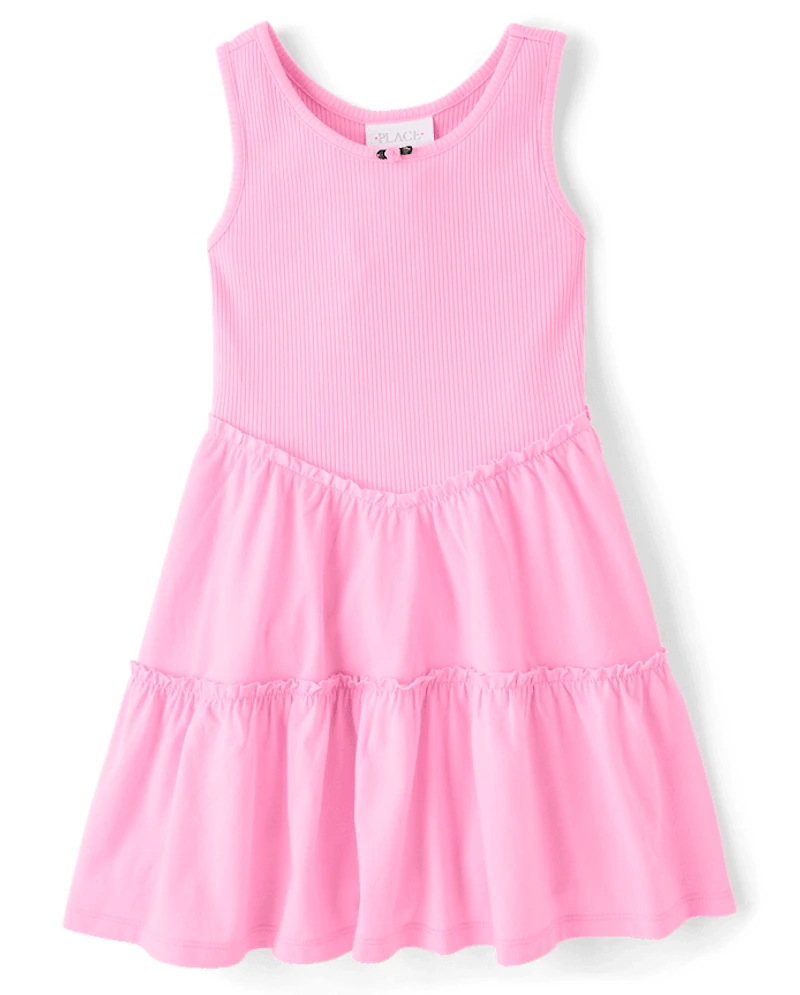 Girls Ribbed Tiered V-Waist Dress