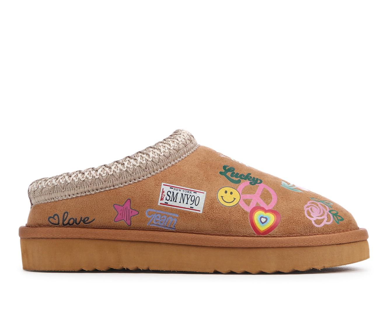 Girls' Steve Madden Little Kid & Big Kid JJordye Slippers Playful personality meets cozy comfort in the Steve Madden JJORDYE slip-ons. Featuring a cork-look upper splashed with colorful graphics and lined with soft faux fur, this backless design delivers warmth and style for casual days. The cushioned footbed and lightweight outsole make them perfect for lounging or on-the-go fun.
