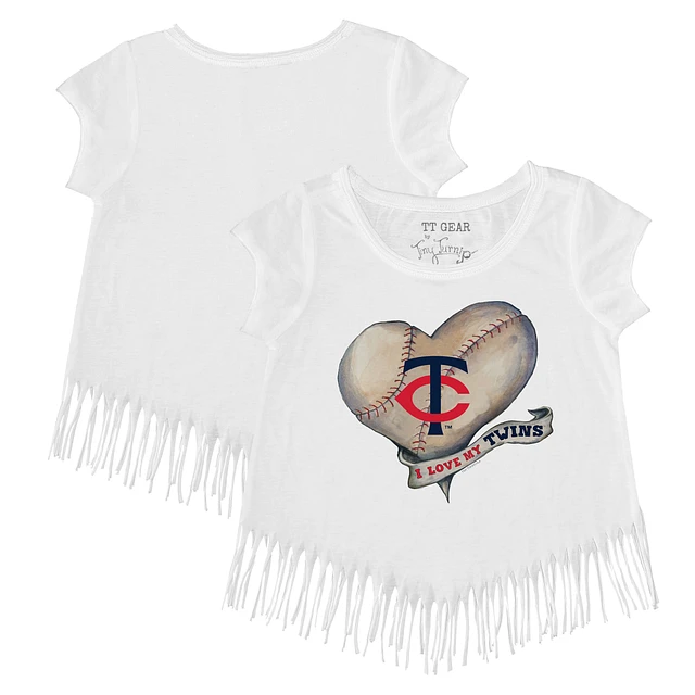 Girls Toddler Tiny Turnip White Minnesota Twins Heart Banner Fringe T-Shirt