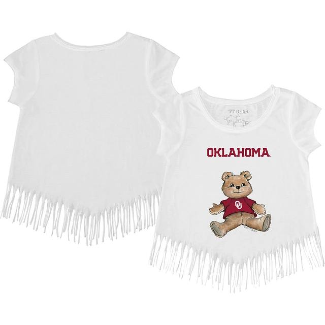 Girls Youth Tiny Turnip Oklahoma Sooners Teddy Bear Fringed T-Shirt
