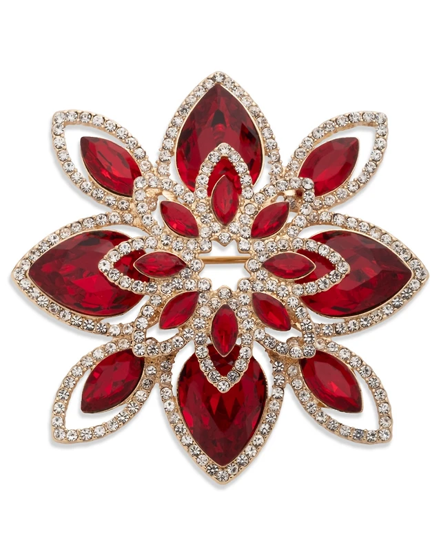 Anne Klein Gold-Tone Crystal Floral Bow Pin