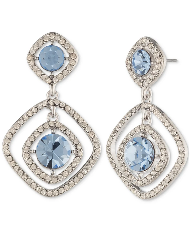 Givenchy Silver-Tone Pave & Round Crystal Halo Orbital Drop Earrings