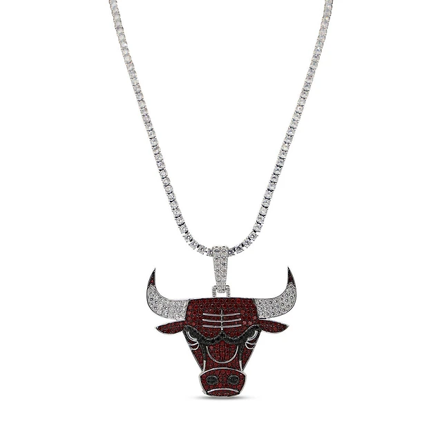 GLD Chicago Bulls 14K White Gold Logo Pendant & 20" Tennis Chain