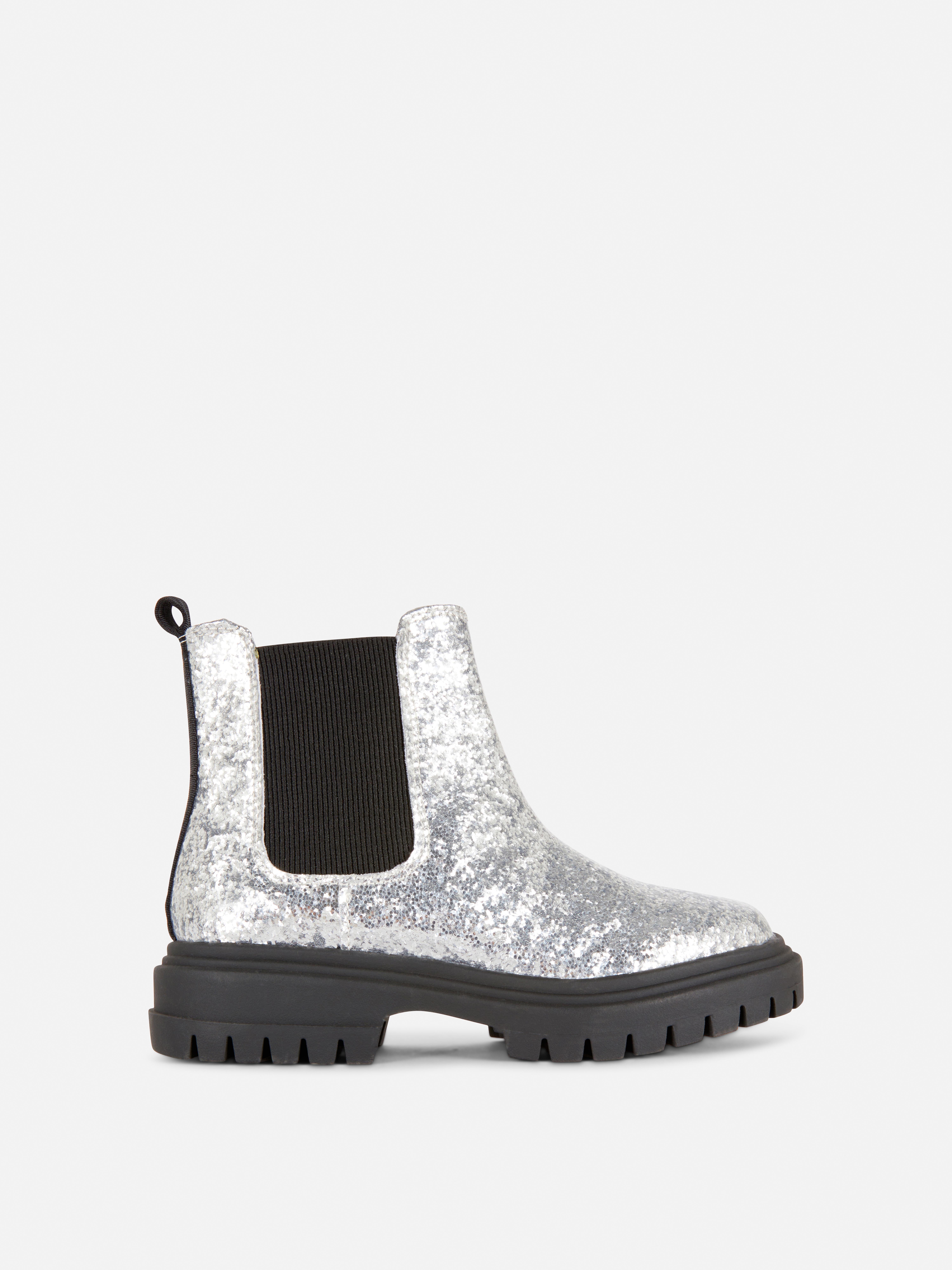 A pair of zip-up Chelsea ankle boots in a glitter finish
