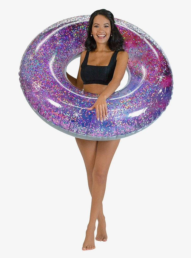 Glitter Galaxy 48" Jumbo Beach and Pool Tube Deep Space Pink Glitter
