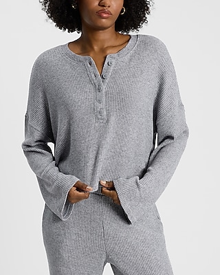 Glitter Waffle Long Sleeve Cropped Henley Tee