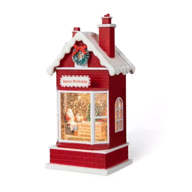 Glitzhome 10.5" Lighted Santa'S Workshop Christmas Snow Globe