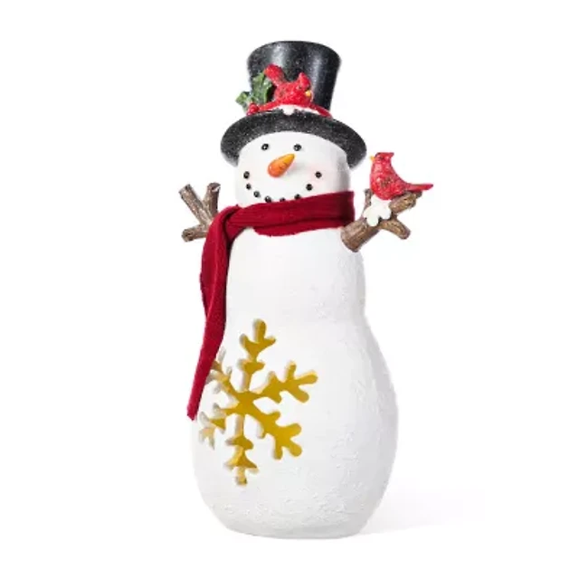 Glitzhome 15"H Christmas Lighted Resin Snowman Christmas Tabletop Decor