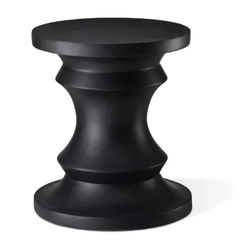 Enhancing your indoor and outdoor space with this multi-functional retro style garden stool. It is inspired by timeless artisan chess silhouette sculptural, featured with embossed texture and high-end hand painted matte back finish that is very attractive and versatile, which not only can blend in with any of your garden, patio or yard as a stool, planter stand or side table, but also perfect for your living room or bedroom as an accent table. Just seating on it to have a rest or placing your favorite planters, foods, cocktails or anything you want on it, and then enjoy a good time!